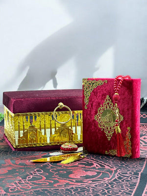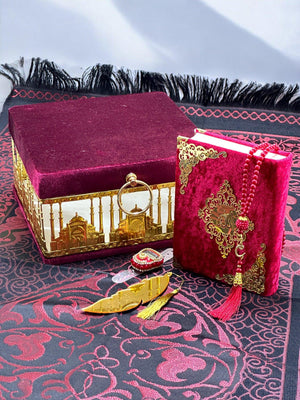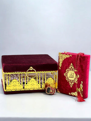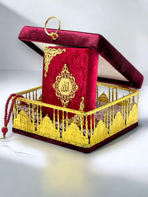 Cami Motifli Özel Sandık Seti - Kuran-ı Kerim, İnci Tesbih, Zikirmatik, Ayraç ve Seccade Hediyesi