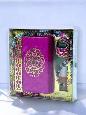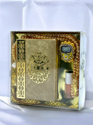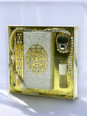 Cep Boy Kuran-ı Kerim, Zikirmatik, Koku Esans ve İnci Tesbih Seti – Şık ve Manevi Hediye Seti