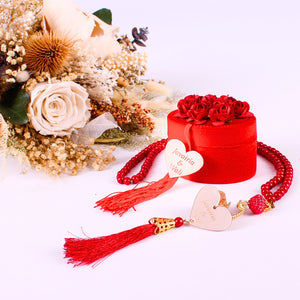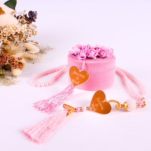 Çiçek Süslemeli Kadife Kutuda Kişiye Özel İnci Tesbih