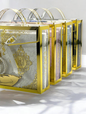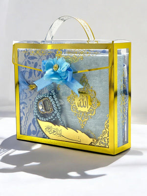 Şeffaf ve kullanışlı çantasında sunulan bu özel set, mevlit, nişan, düğün veya hac/umre hediyeleri olarak sevdikleriniz için anlamlı bir tercih.