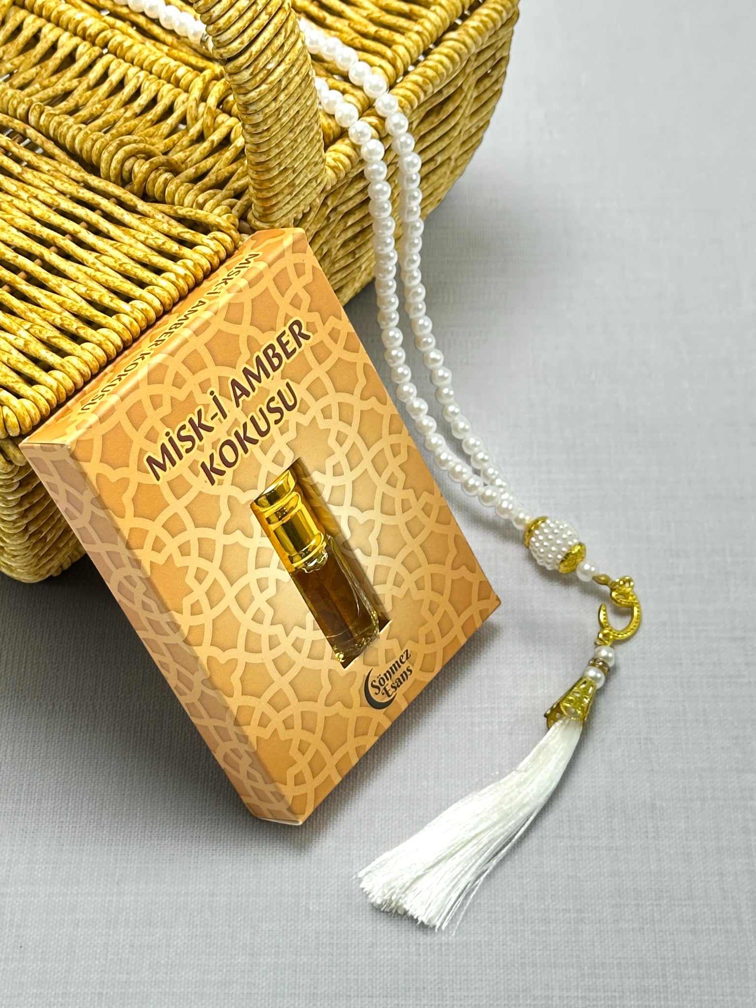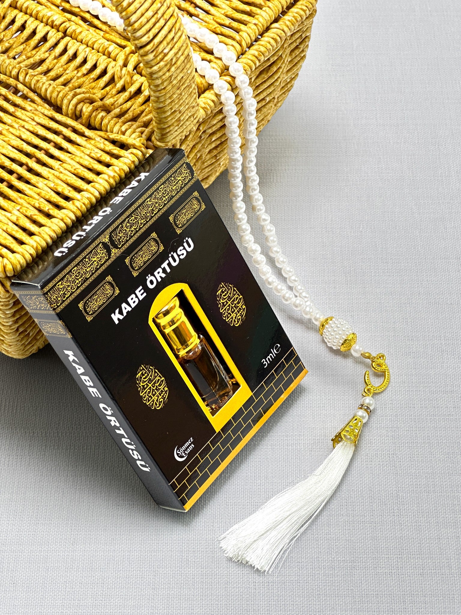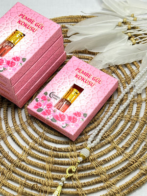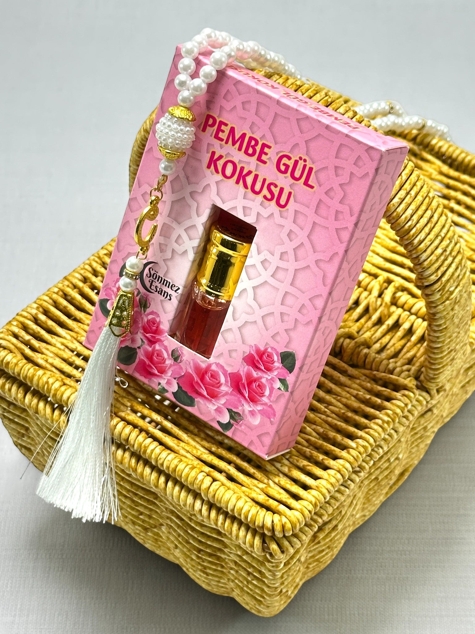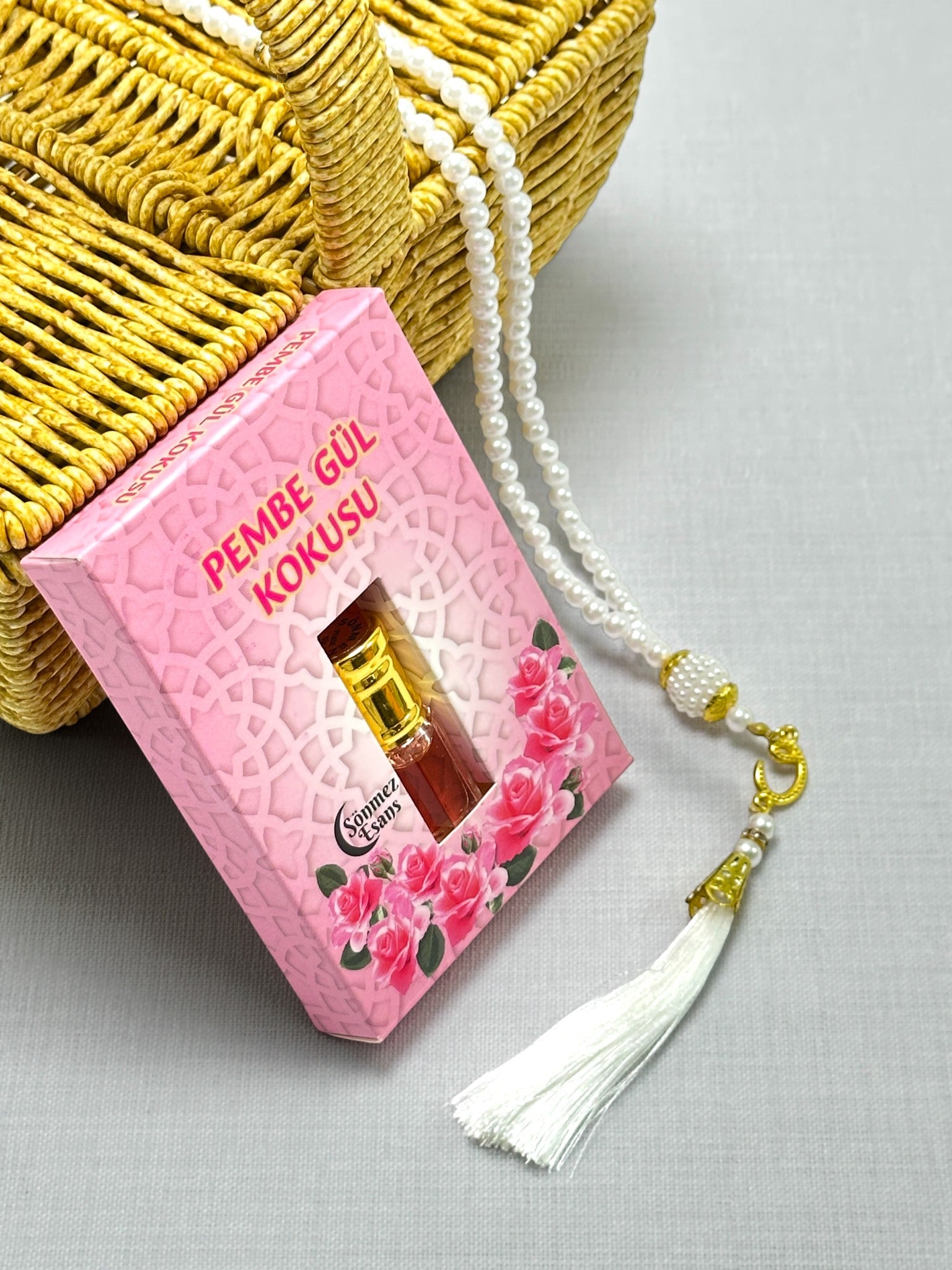 Hediyelik Pembe Gül Esansı 3 ml & İnci Tesbih – Manevi Dokunuşlu Özel Koku Seti