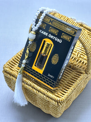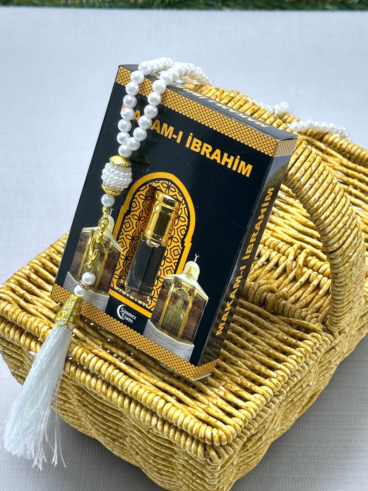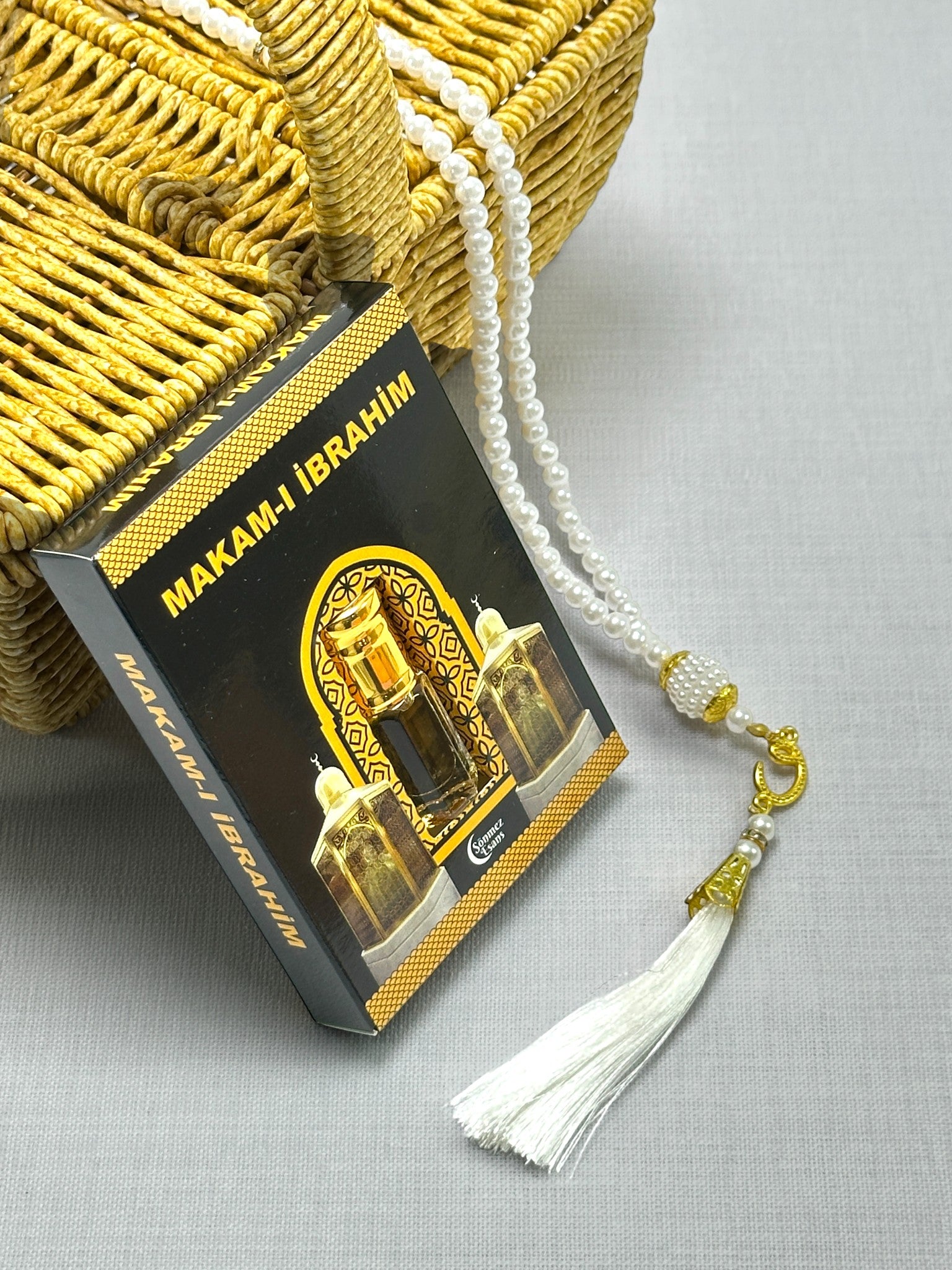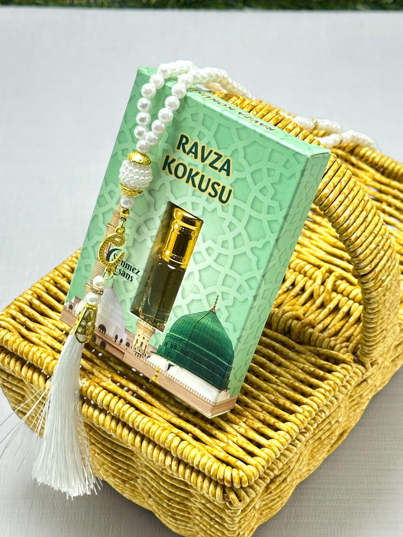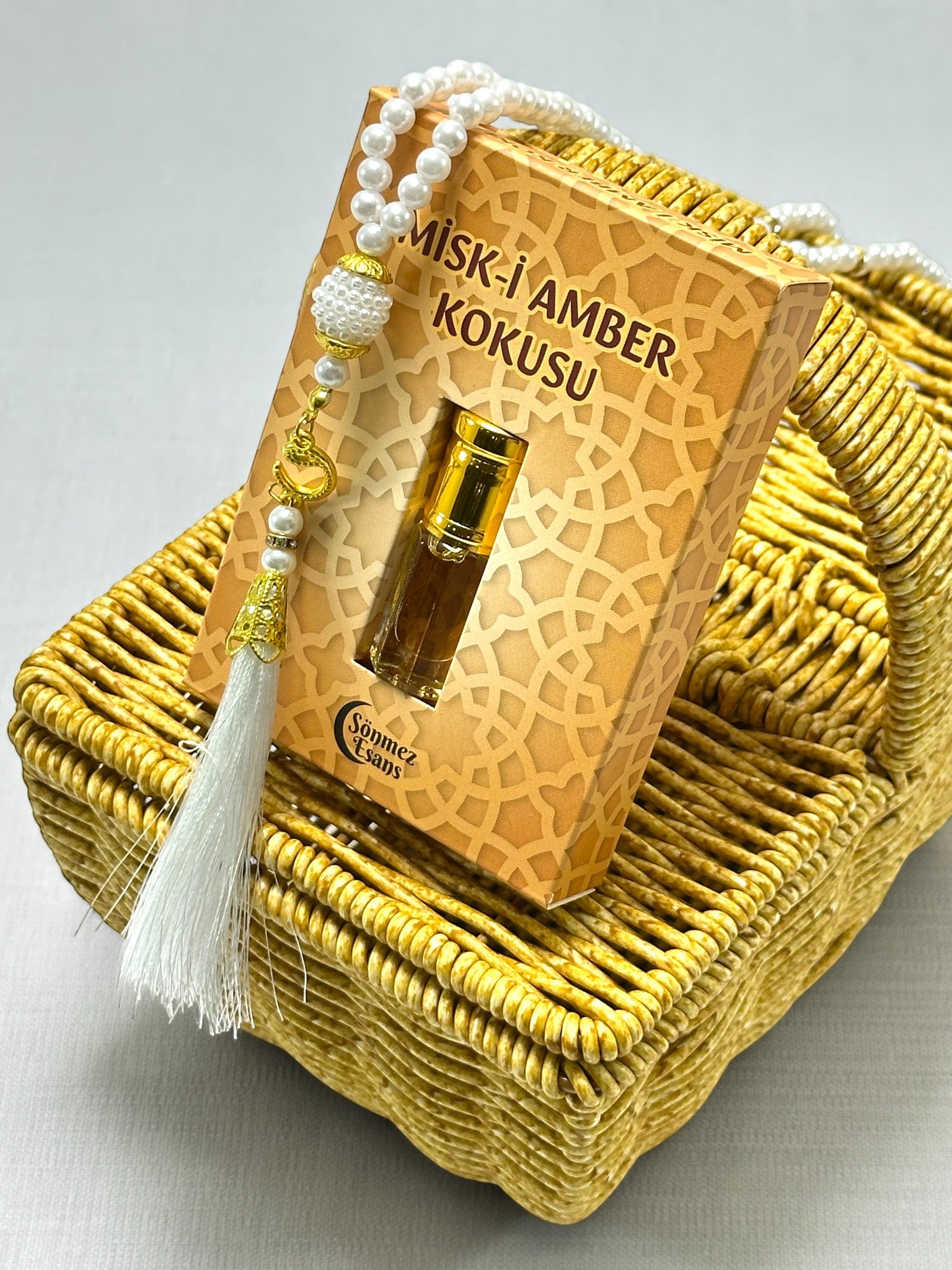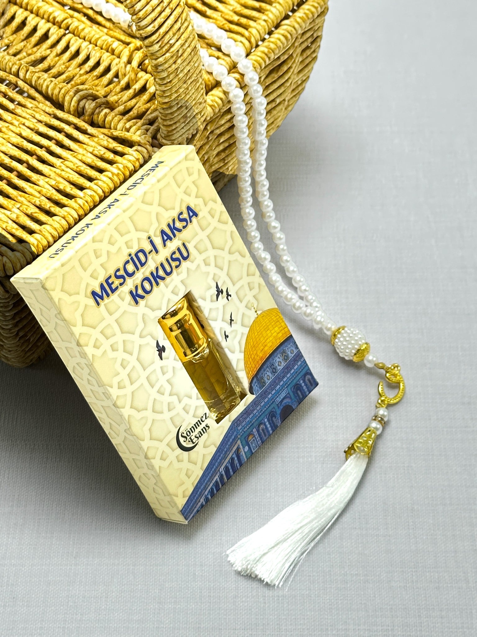 Hediyelik Pembe Gül Esansı 3 ml & İnci Tesbih – Manevi Dokunuşlu Özel Koku Seti