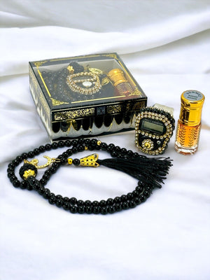 Hediyelik Taşlı Zikirmatik, İnci Tesbih ve Esans Seti Kutulu