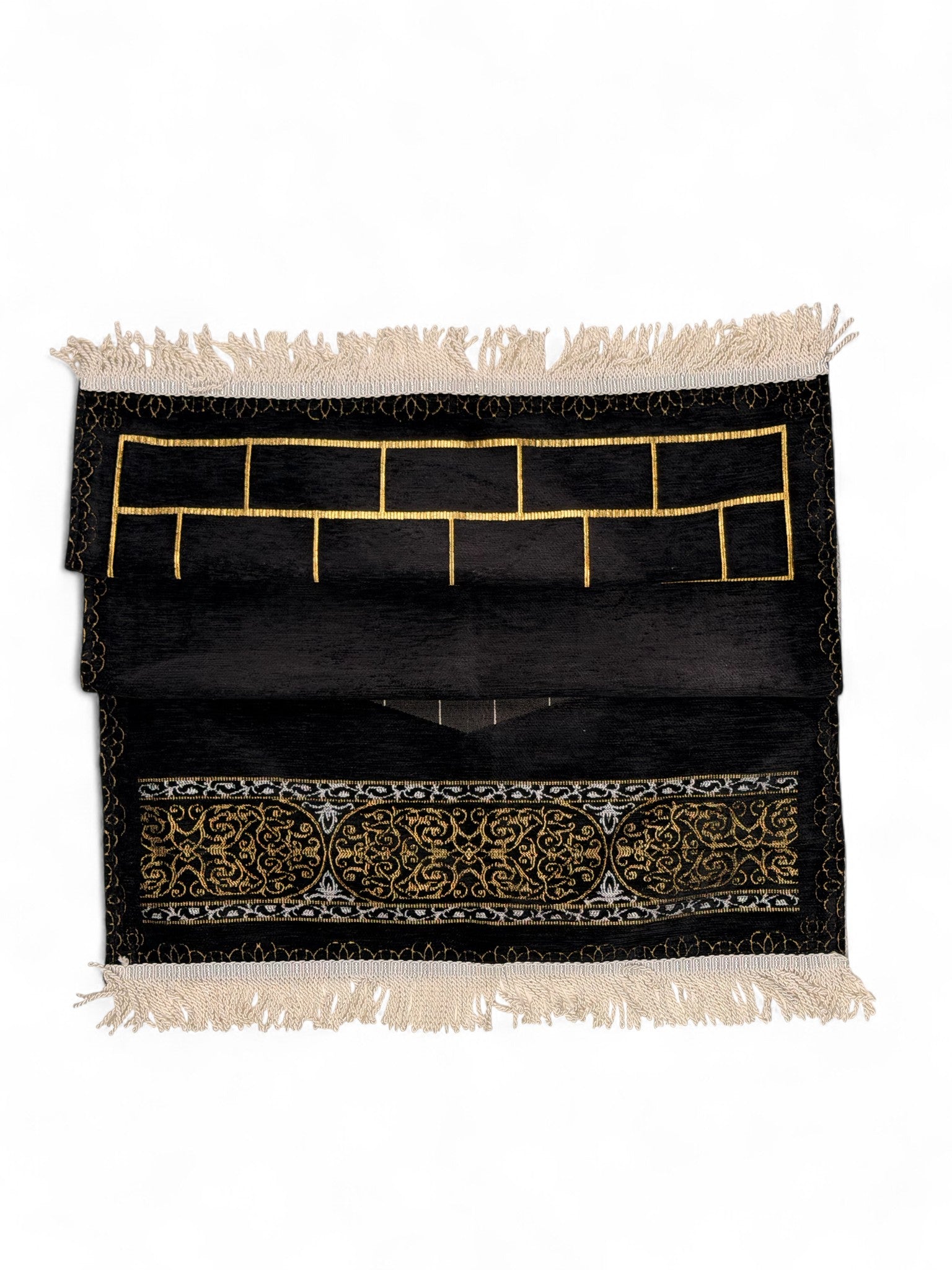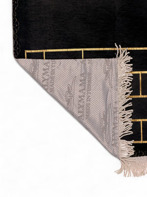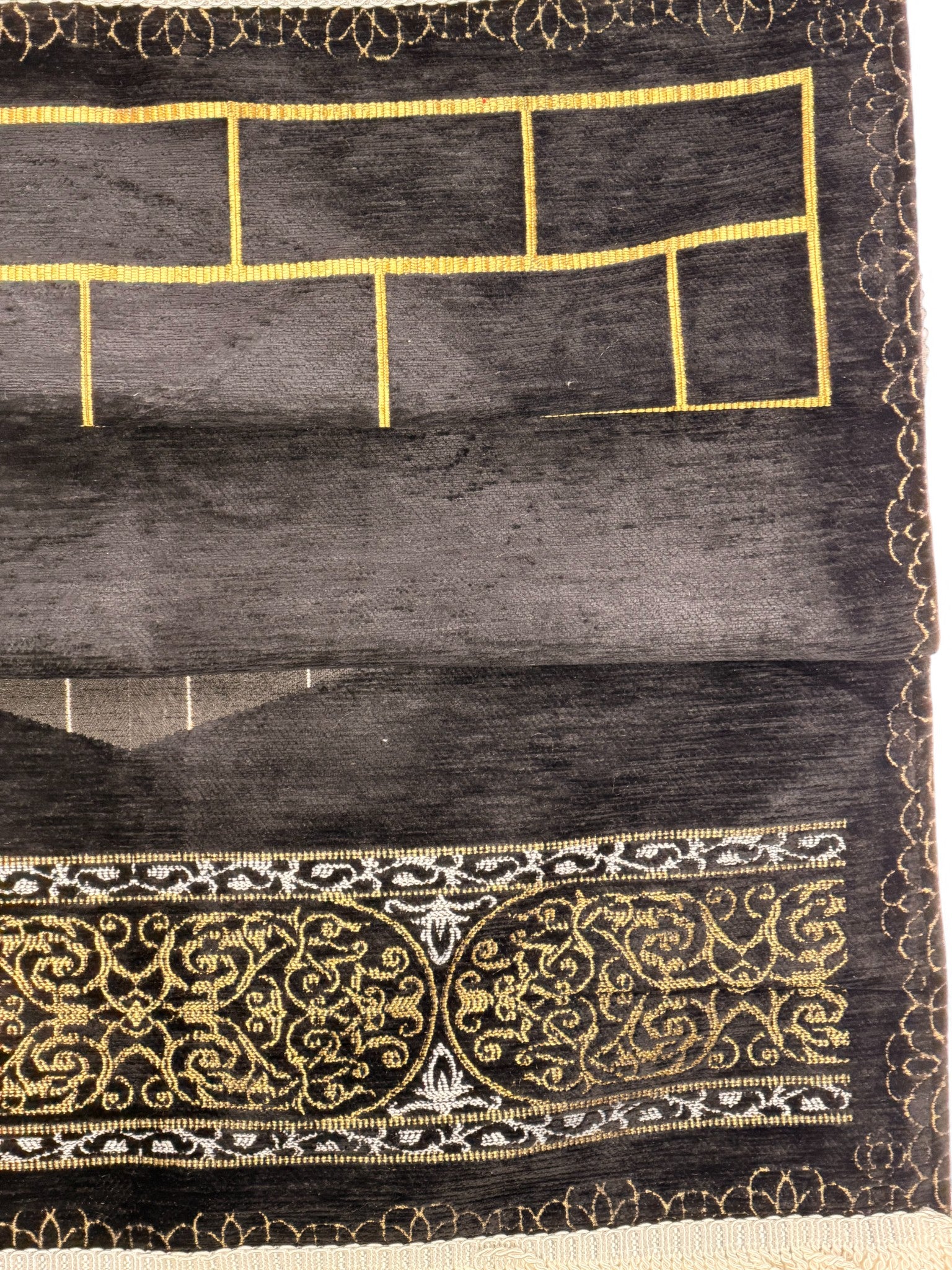Kâbe Desenli Şönil Seccade – Lüks Dokulu, Altın İşlemeli, Hediyelik ve Çeyizlik Tasarım