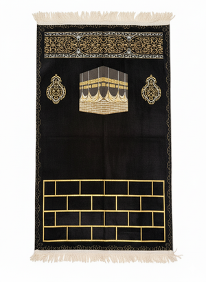 Kutsal mekânın huzurunu evinize taşıyan bu Kâbe desenli kadife seccade, hem manevi değeri hem de şık tasarımıyla öne çıkıyor.