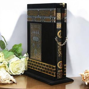 Kadife Altın Yaldızlı Kabe Maketi ve Kur'an-ı Kerim Seti