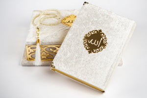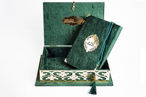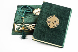 "Kadife kaplı özel kutusu ile şıklığı ve zarafeti bir araya getiren Kur’an-ı Kerim seti, anlamlı bir hediye arayanlar için ideal bir seçimdir. Özenle tasarlanmış yumuşak kadife kaplama, lüks detaylarla süslenmiş olup, hem estetik hem de manevi değeri ön planda tutar. Sevdiklerinizin özel günlerinde, düğün, mevlit veya hediyelik olarak unutulmaz bir armağan sunabilirsiniz. Dayanıklı yapısı sayesinde uzun yıllar saklanabilir ve manevi bir miras olarak kalır."