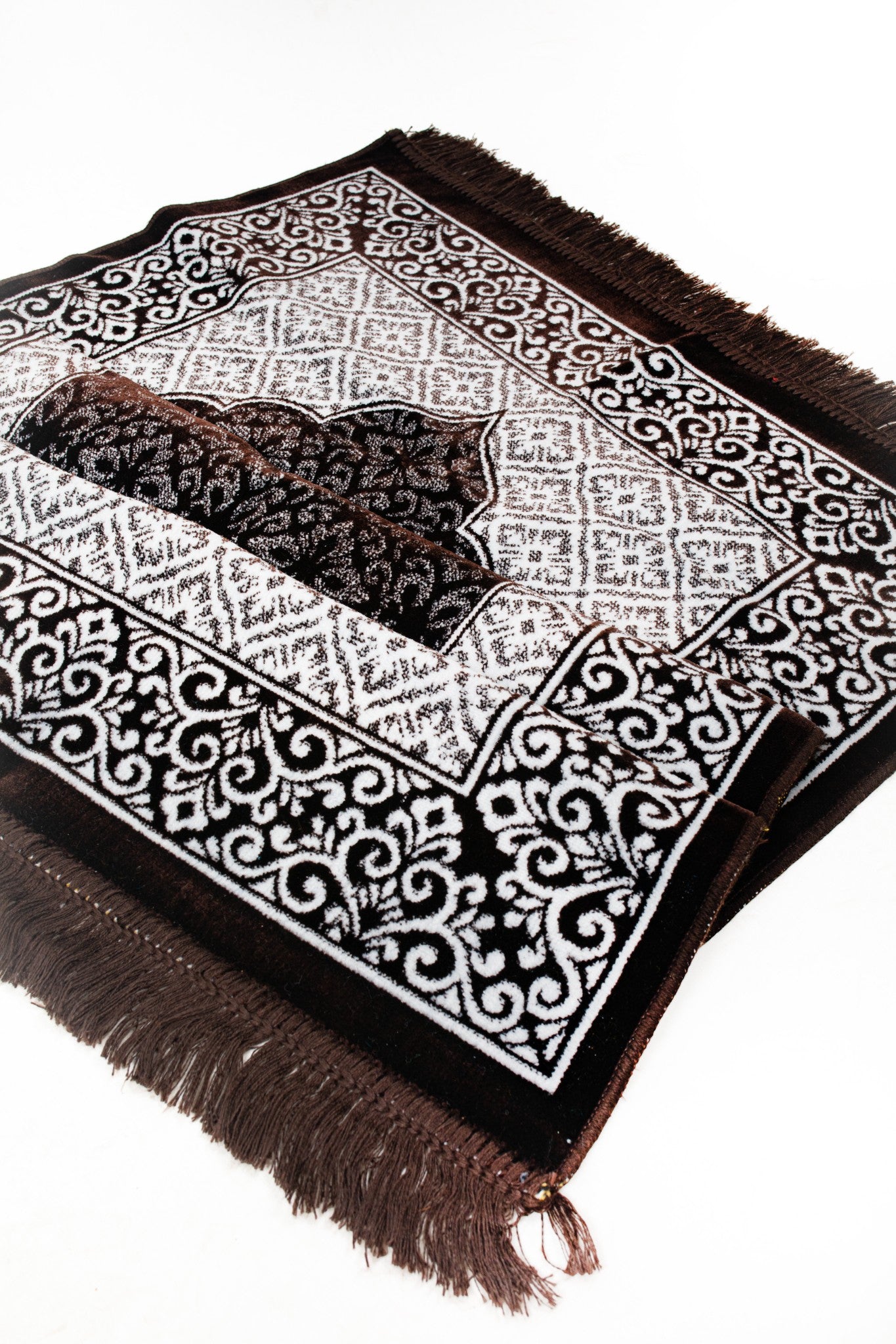Kadife Lüks Desenli Seccade – Mescit Desenli Namazlık, Hac ve Umre Hediyelik, Çeyizlik Seccade