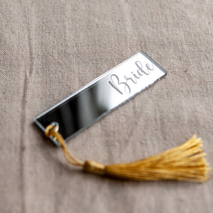 Şıklığı, zarafeti ve işlevselliği bir arada sunan bu kişiye özel kitap ayracı; gümüş ayna pleksi üzerine lazerle yazılan isim detayı ve mor tonlardaki püskülü ile davet sofralarınızda dikkat çekici bir hediye seçeneği sunuyor.