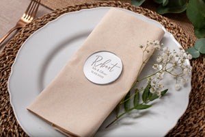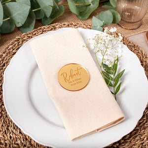 Altın aynalı pleksi yuvarlak formda hazırlanan bu masa isimliği, üzerine özel olarak isim, çift adı ve tarih işlenerek hazırlanır. Hem masa süsü olarak kullanılabilir hem de konuklara anlamlı bir hatıra olarak sunulabilir.