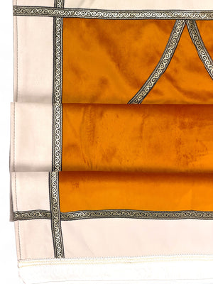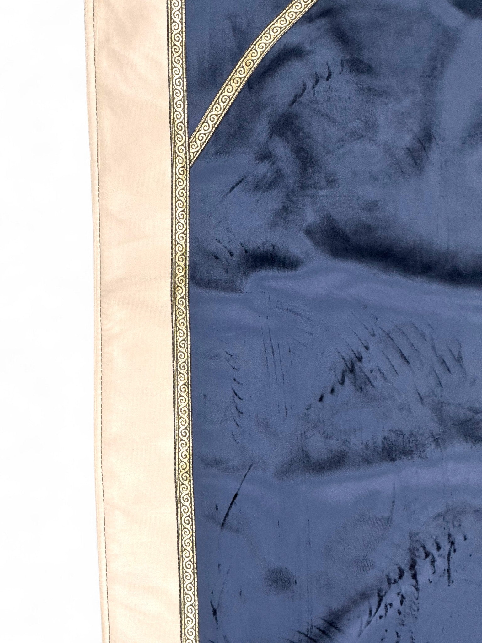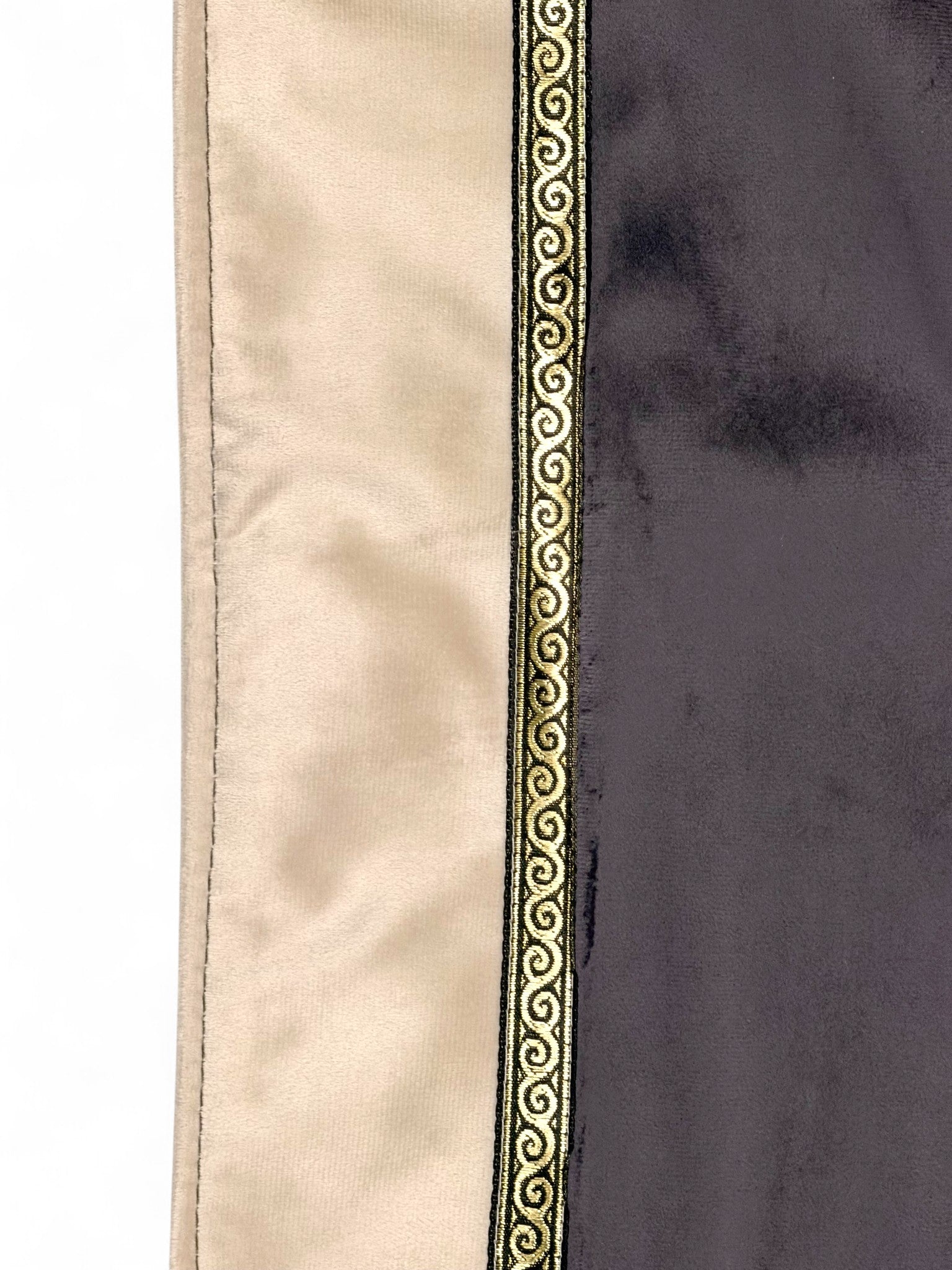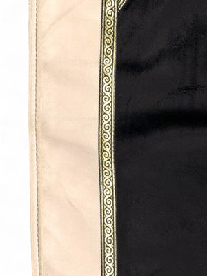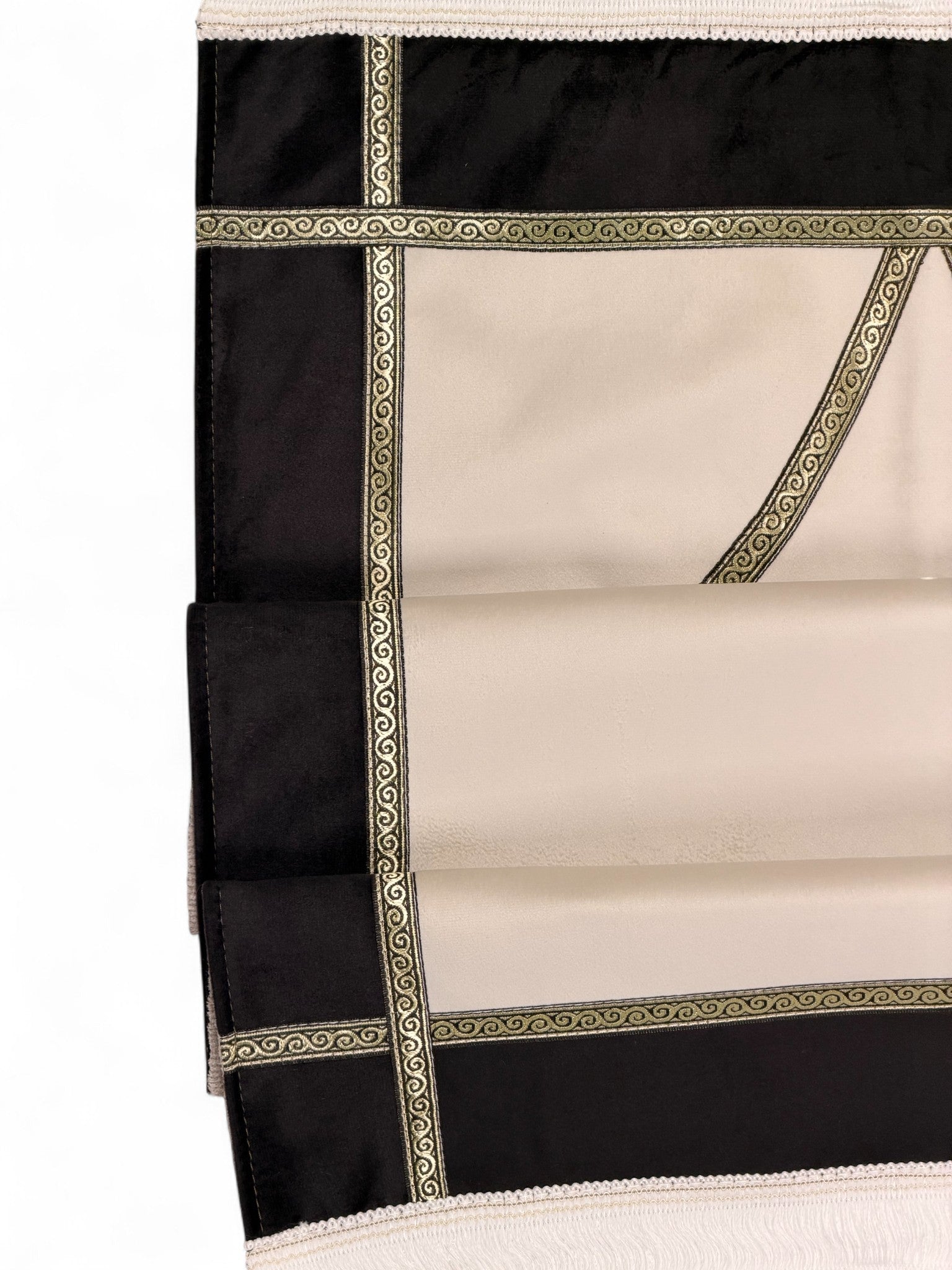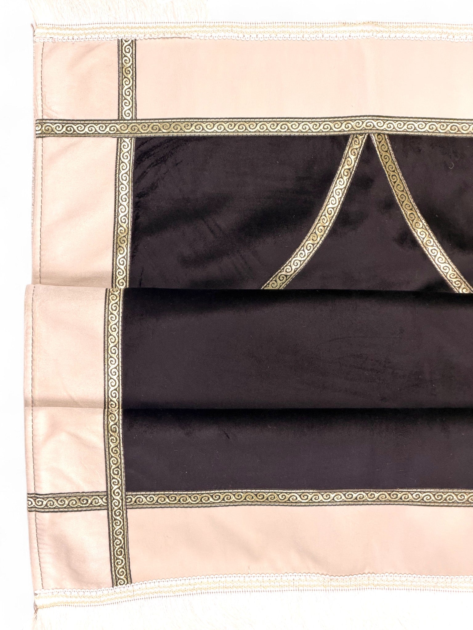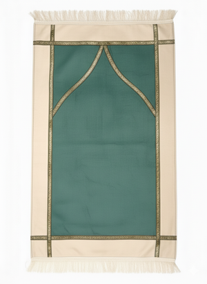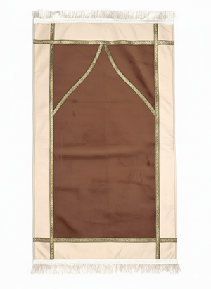 Krem ve siyah tonların asil uyumu, altın detaylı hat süslemeleriyle birleşerek seccadeye modern bir duruş kazandırır. 🌙