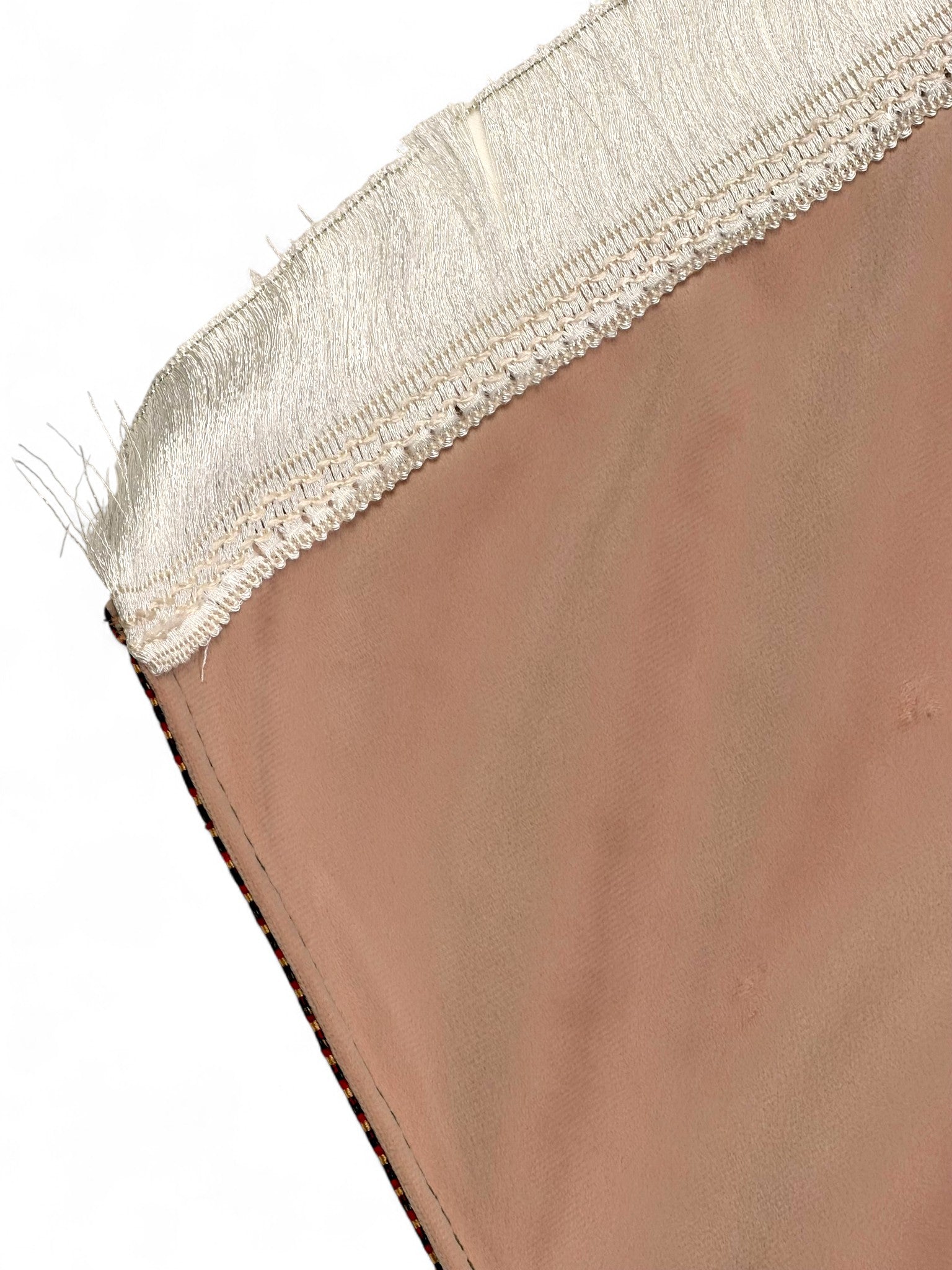 Zarif Püskül Detayı: Kenar kısımlarındaki krem püsküller modern ve klasik şıklığı birleştirir.