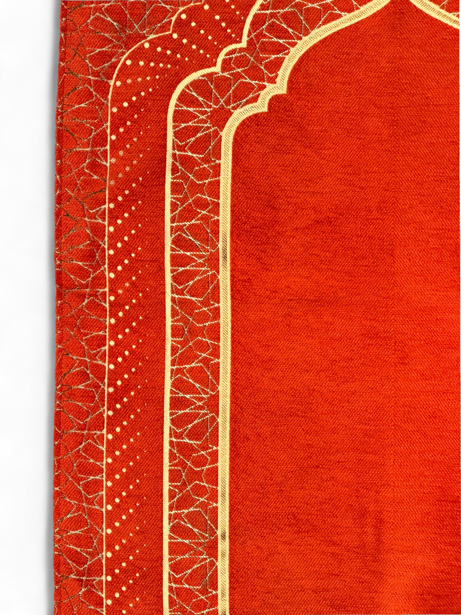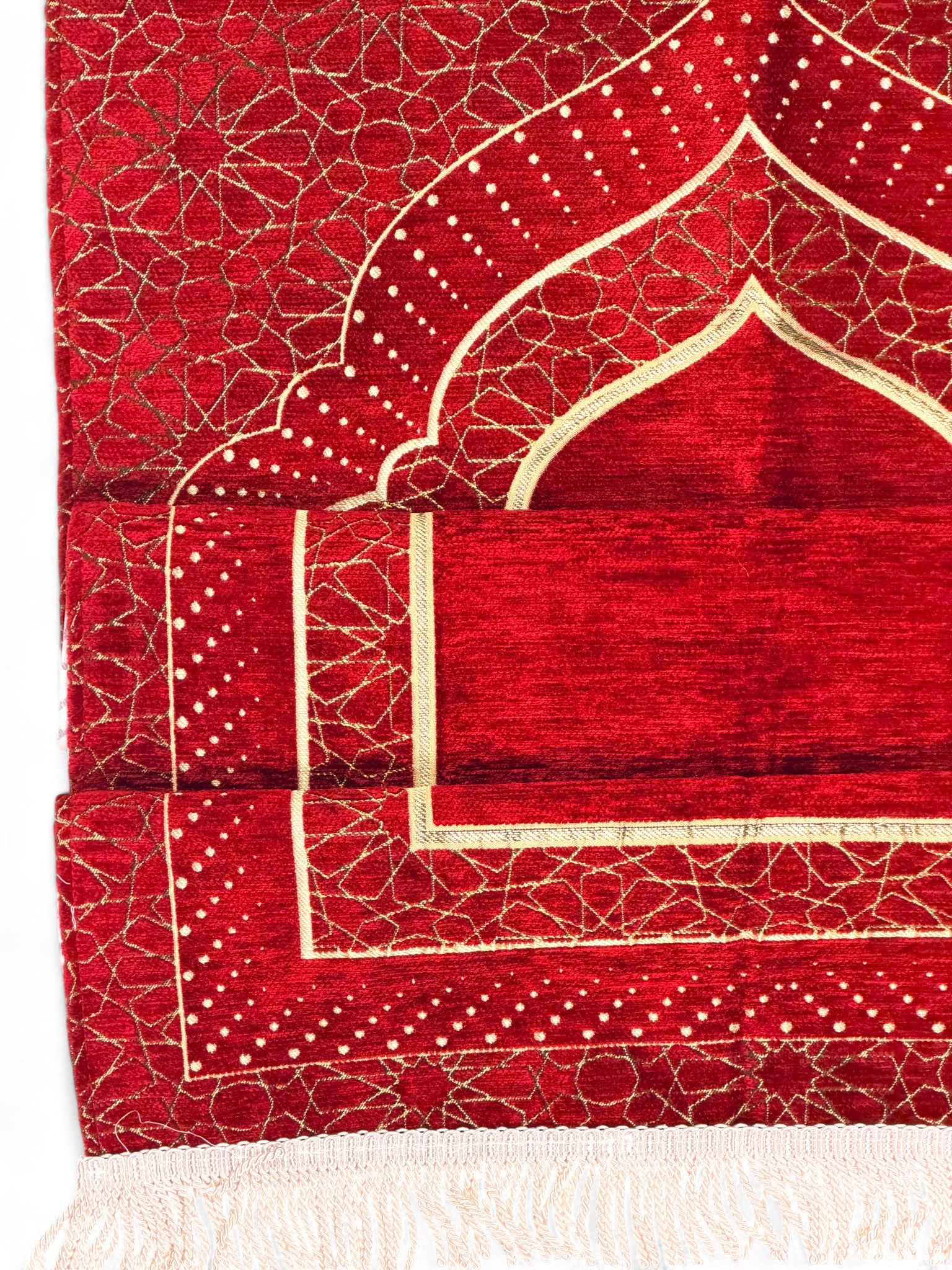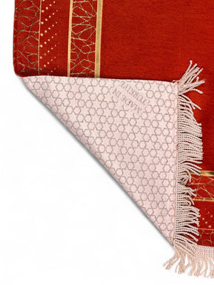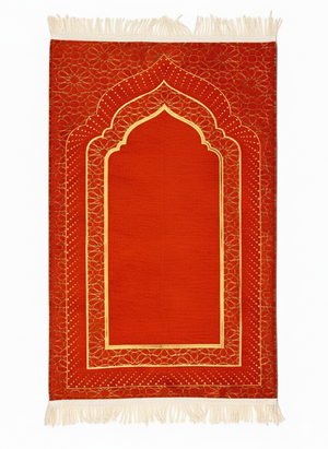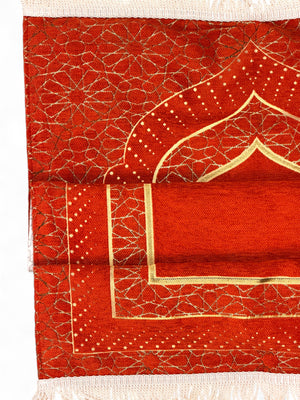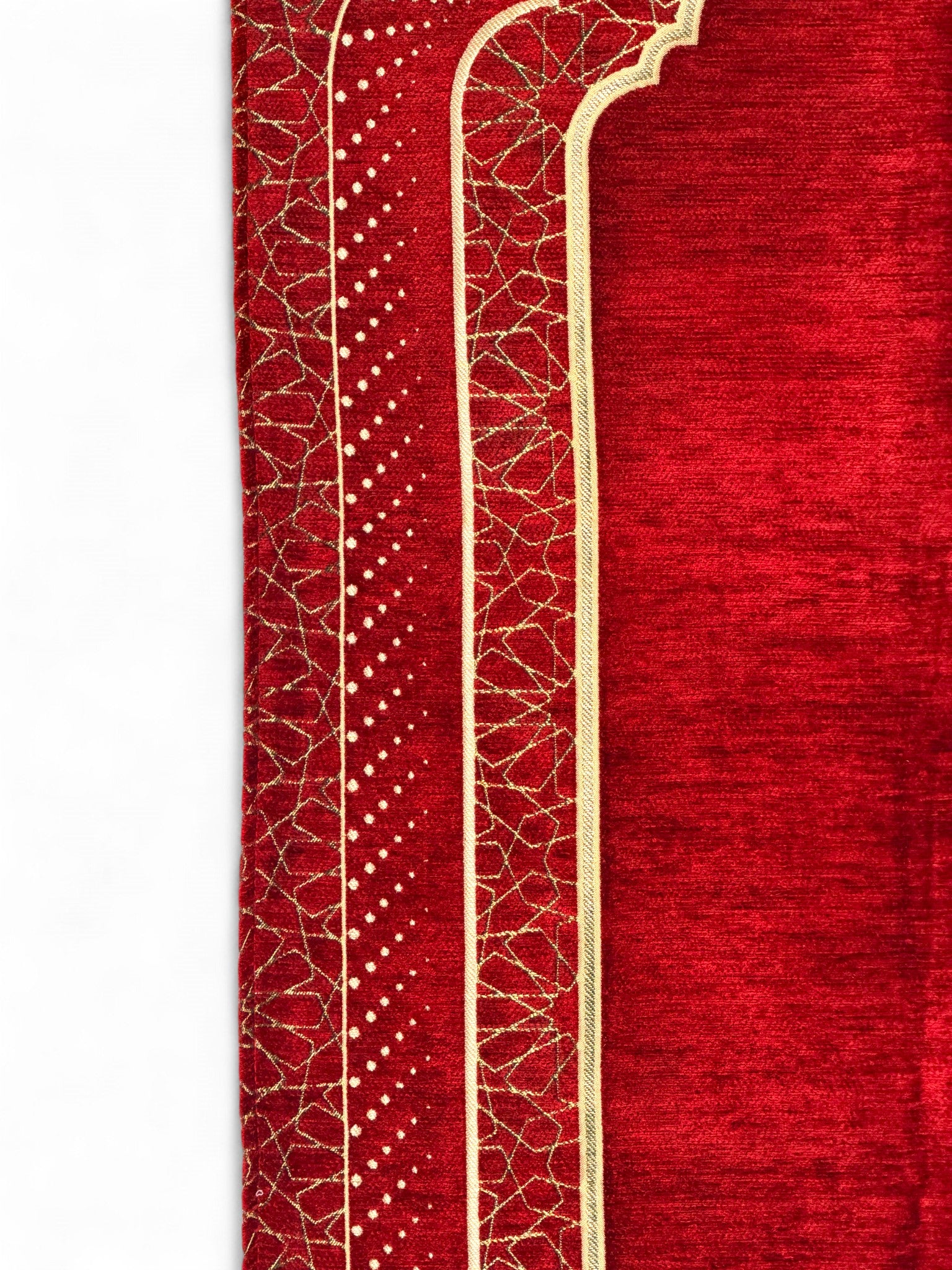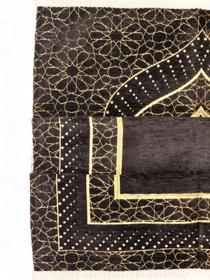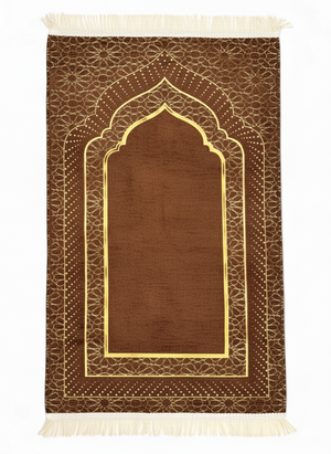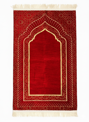 Mihrap Desenli Astarlı Şönil Seccade – Lüks Dokulu, Altın Detaylı, Hediyelik Seccade