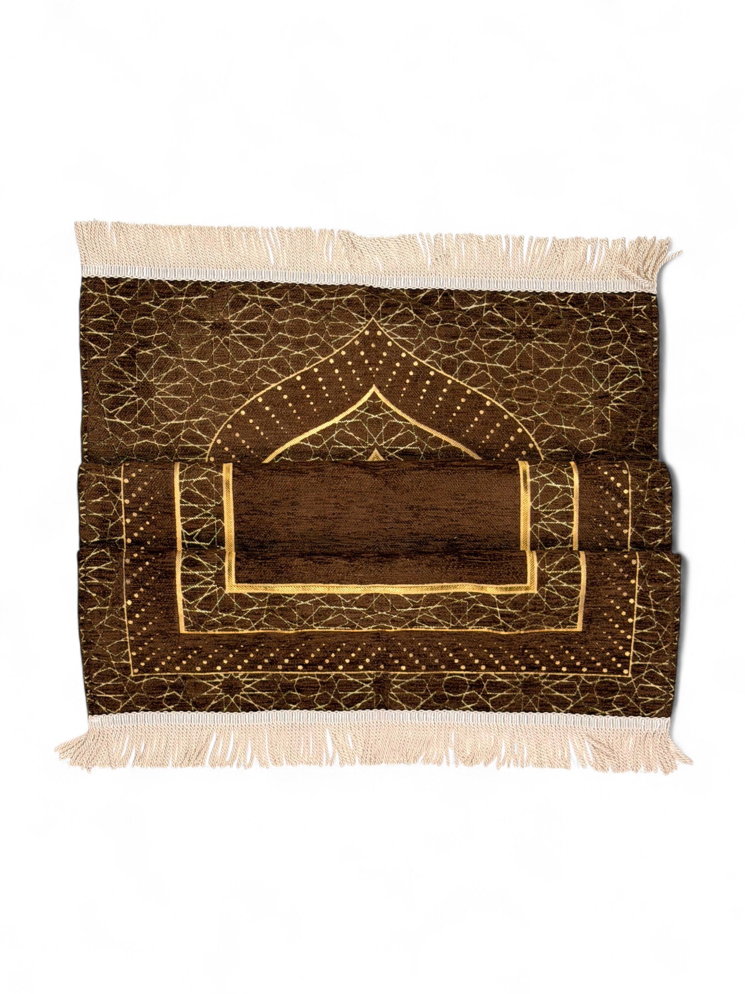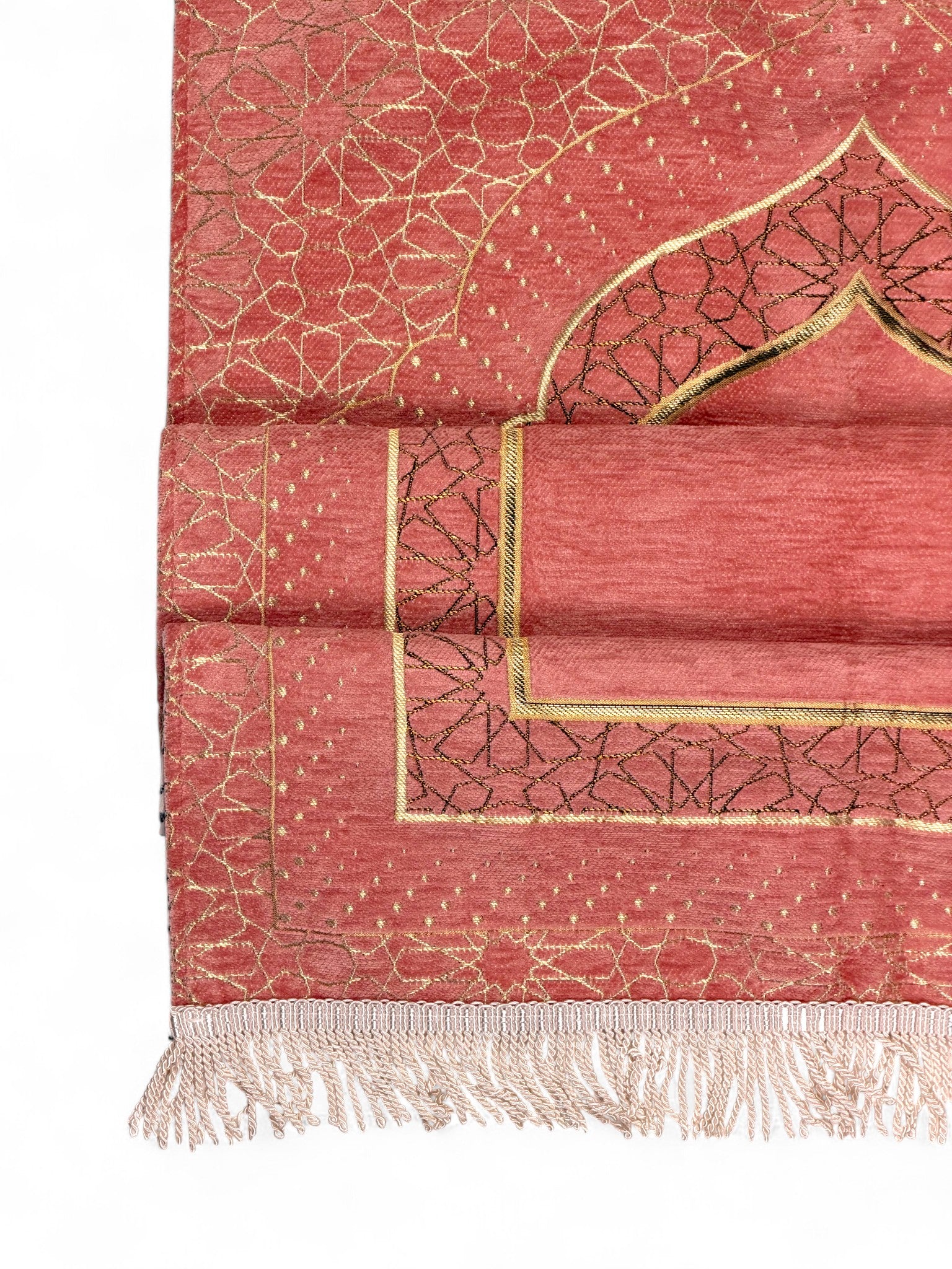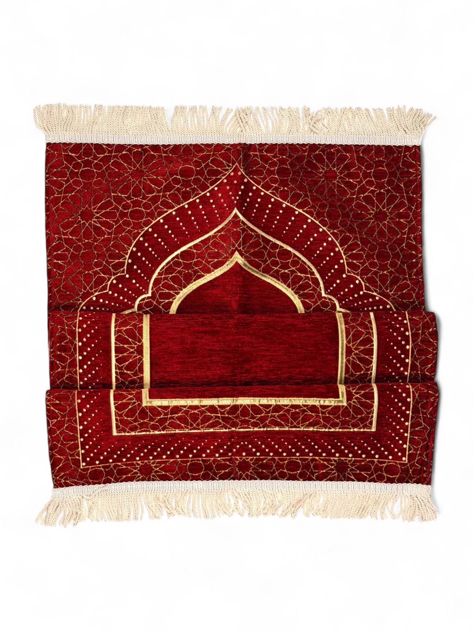 Mihrap Desenli Astarlı Şönil Seccade – Lüks Dokulu, Altın Detaylı, Hediyelik Seccade