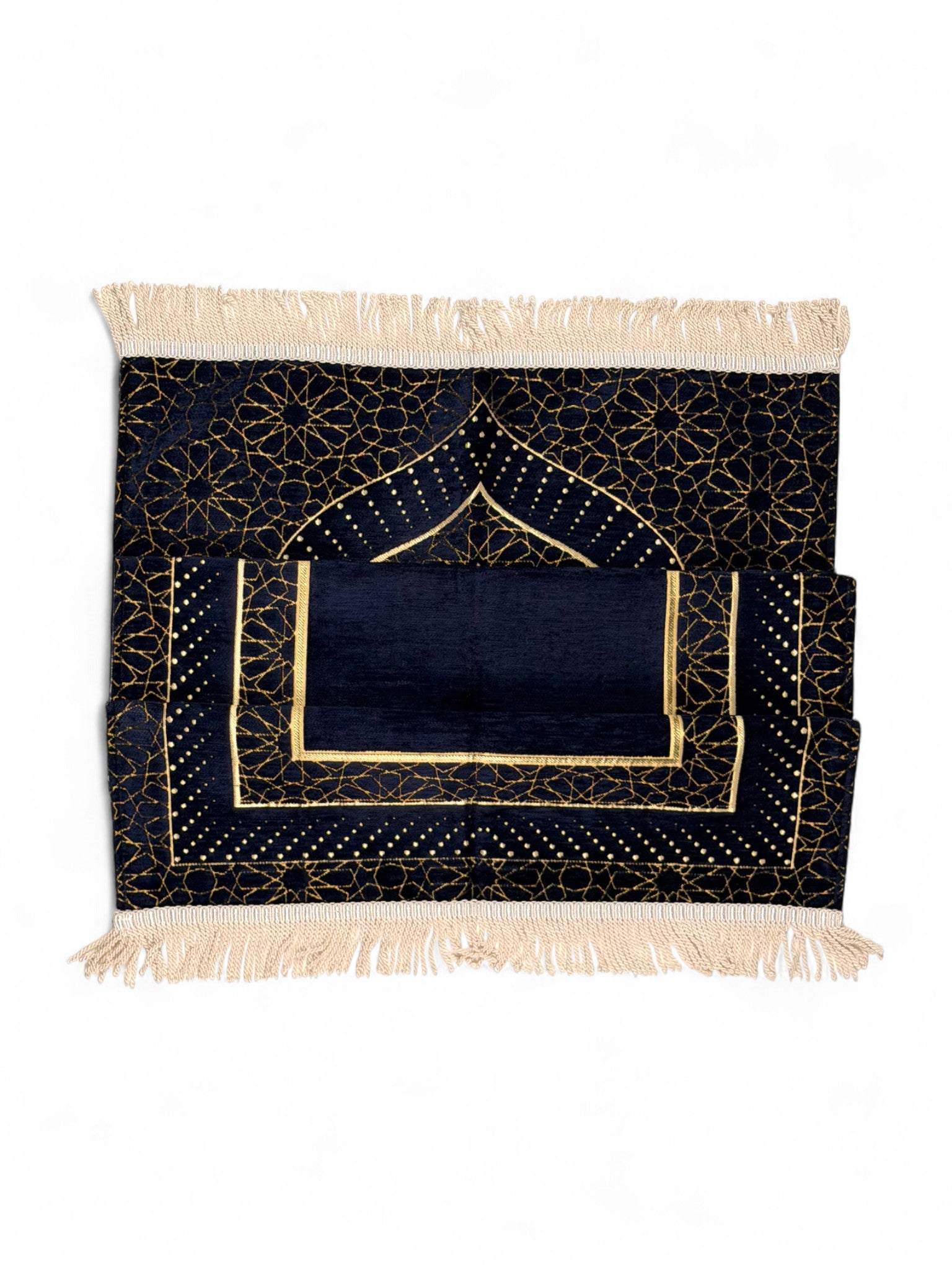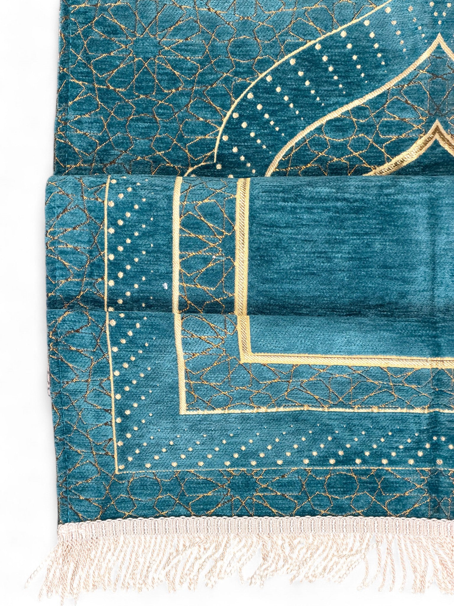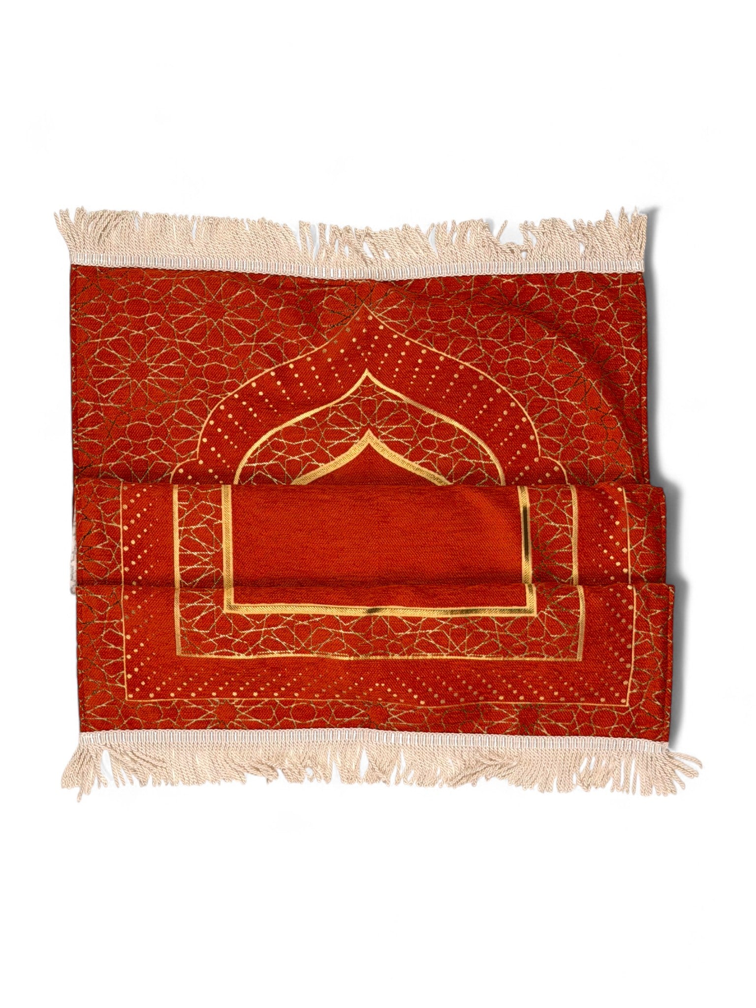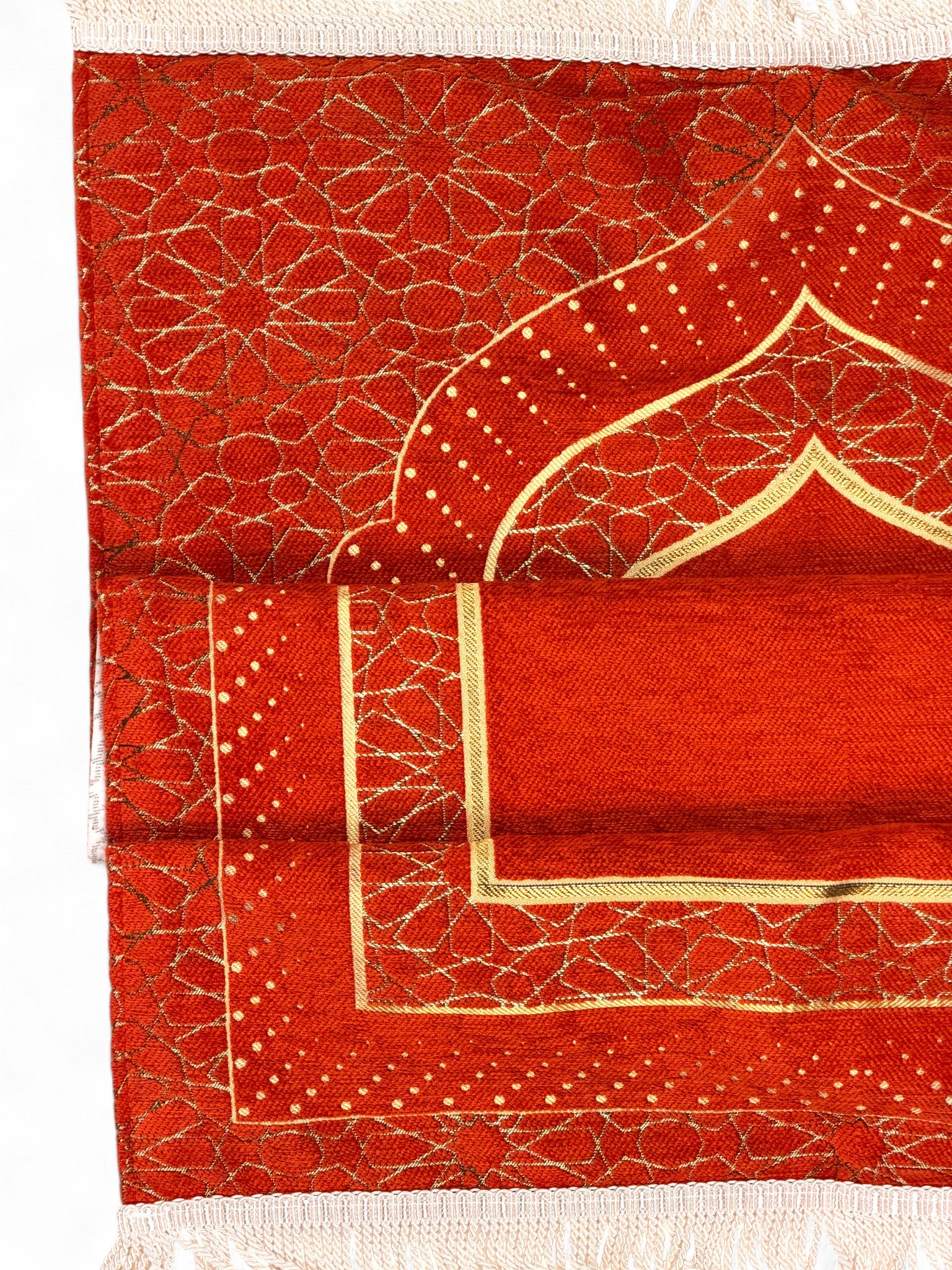 Mihrap Desenli Astarlı Şönil Seccade – Lüks Dokulu, Altın Detaylı, Hediyelik Seccade