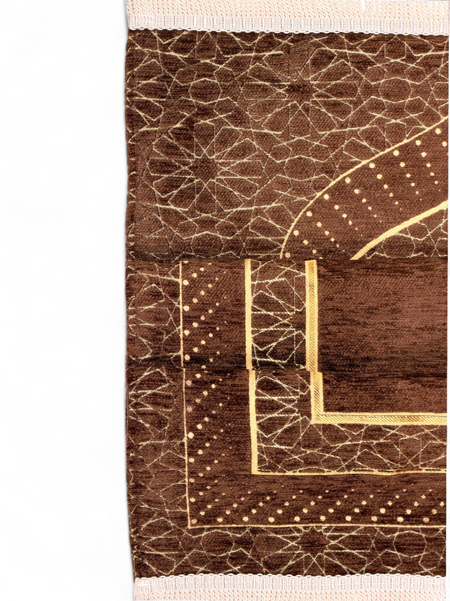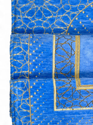 Altın tonlardaki işlemeleri ve yoğun şönil dokusu sayesinde hem görsel olarak estetik hem de kullanımı konforludur. 🌙