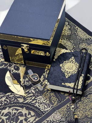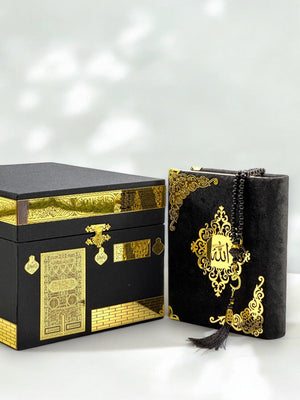 Özel Kabe Tasarımlı Hediye Seti - Kuran-ı Kerim, İnci Tesbih, Zikirmatik, Ayraç ve Seccade