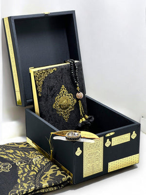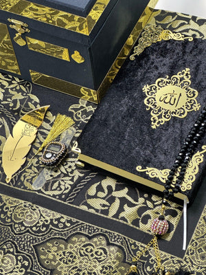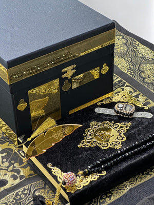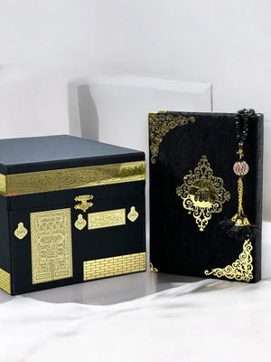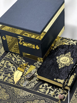 Özel Kabe Tasarımlı Hediye Seti - Kuran-ı Kerim, İnci Tesbih, Zikirmatik, Ayraç ve Seccade