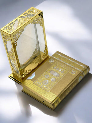 İpek Hediyelik farkıyla sunulan Şeffaf Maket Kuran Seti, zarif tasarımı ve şık görünümüyle sevdiklerinize anlamlı bir hediye seçeneği sunuyor. Maket şeklindeki şeffaf kutu içinde yer alan Kur’an-ı Kerim, dekoratif bir obje olarak da kullanılabilir.