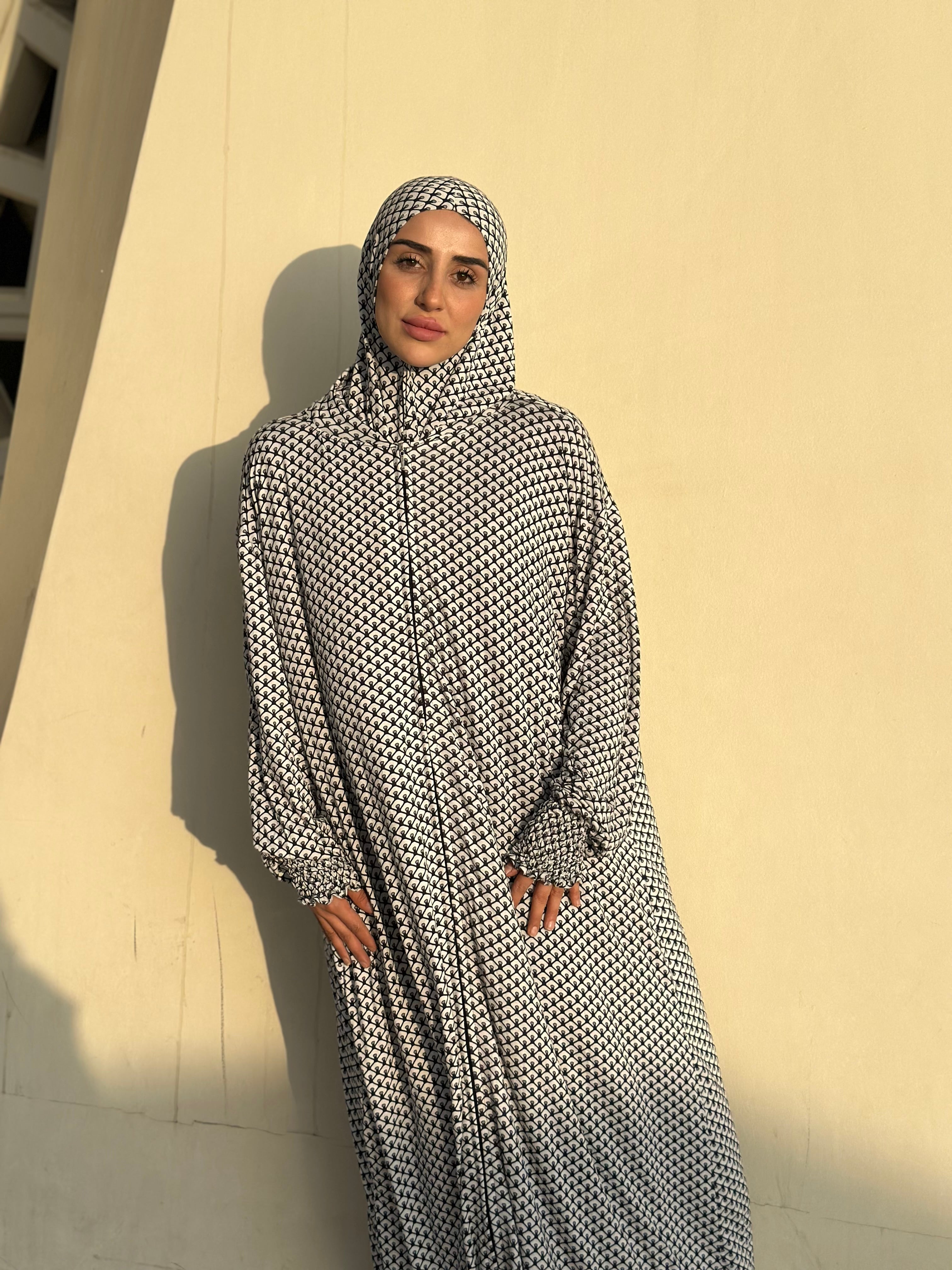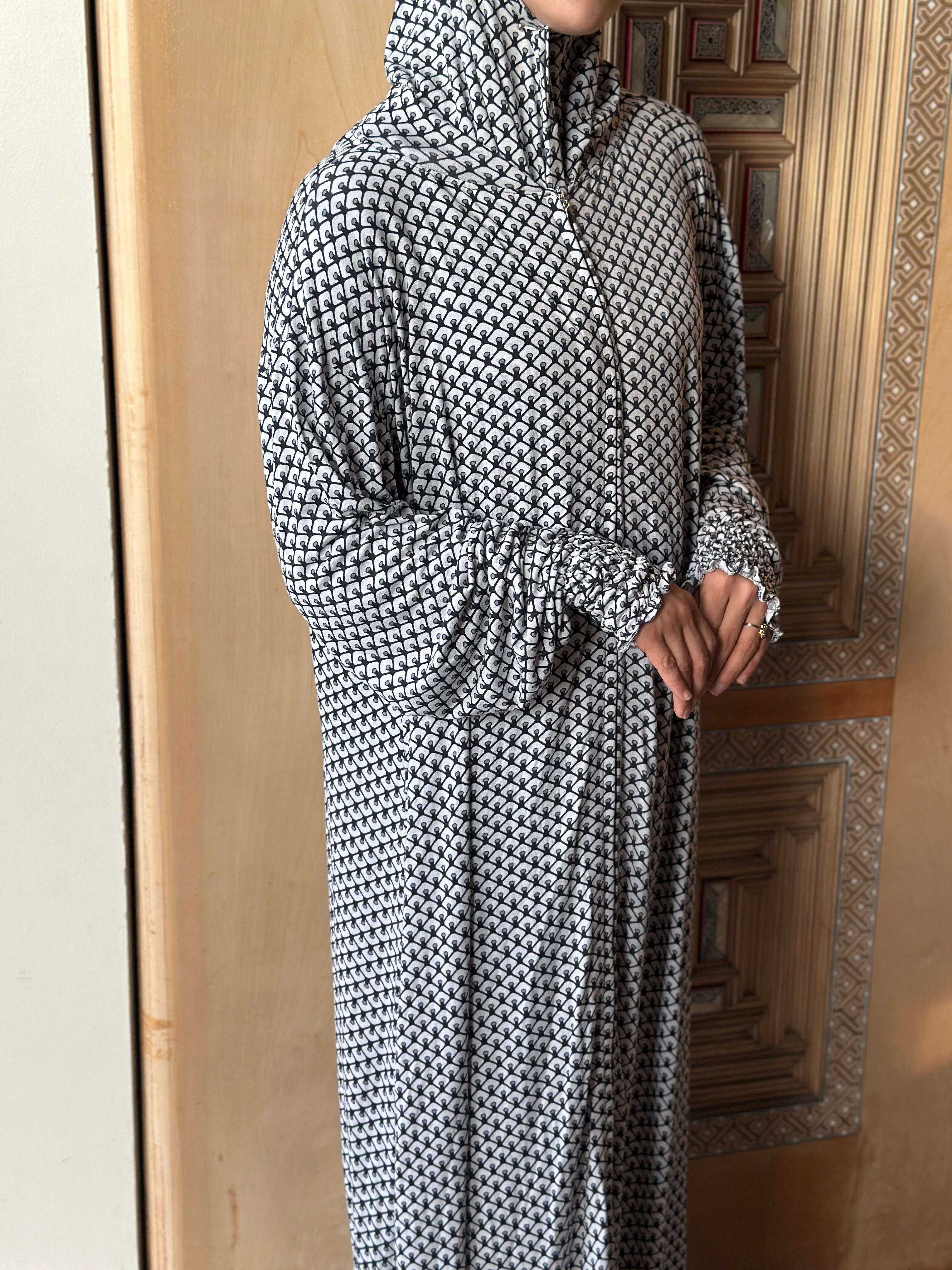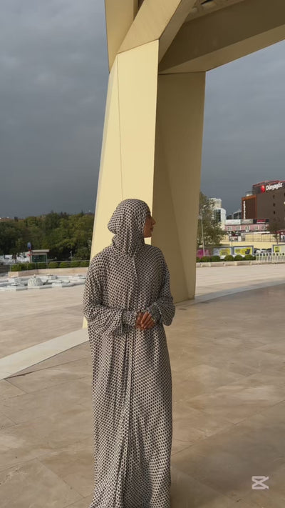 Pamuklu Kendinden Boneli Desenli Tesettür Kadın Namaz Elbisesi – Rahat ve Ferah İbadet Kıyafeti