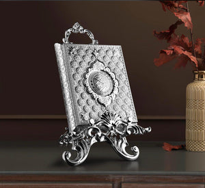 Silver Renkli Metal Kur’an Standı – Şıklığın ve Zarafetin Buluşma Noktası