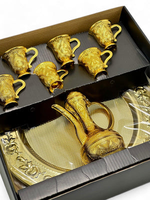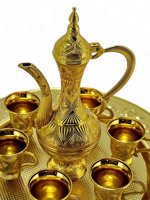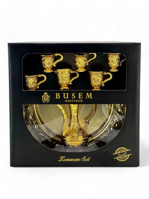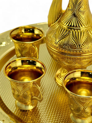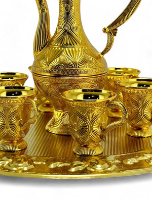 Vintage Tarzı İçecek Seti – Çay, Kahve, Zemzem Su Sürahisi ve Altın Detaylı Zemzem Takımı
