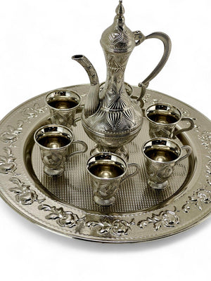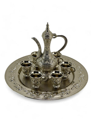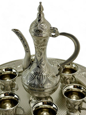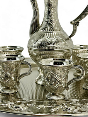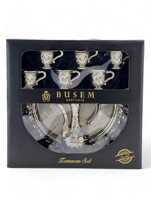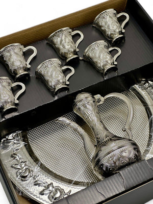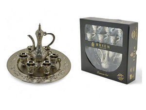 Vintage Tarzı İçecek Seti – Çay, Kahve, Zemzem Su Sürahisi ve Silver Detaylı Zemzem Takımı